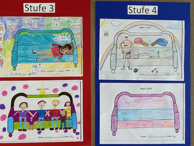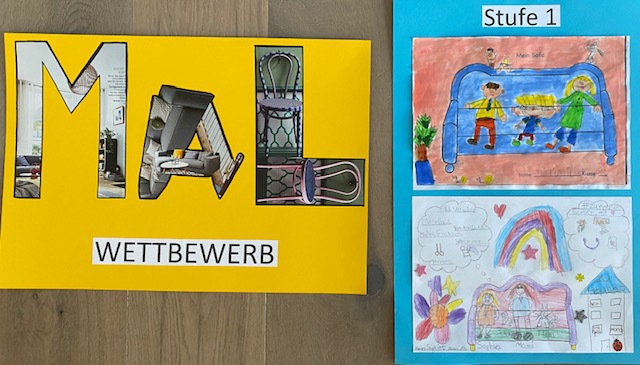 Die 8 schönsten, kreativsten Bilder (2 aus jeder Stufe) bekommen einen kleinen Preis und erwarten euch an der Wand in der Pausenhalle, wenn ihr wiederkommt.