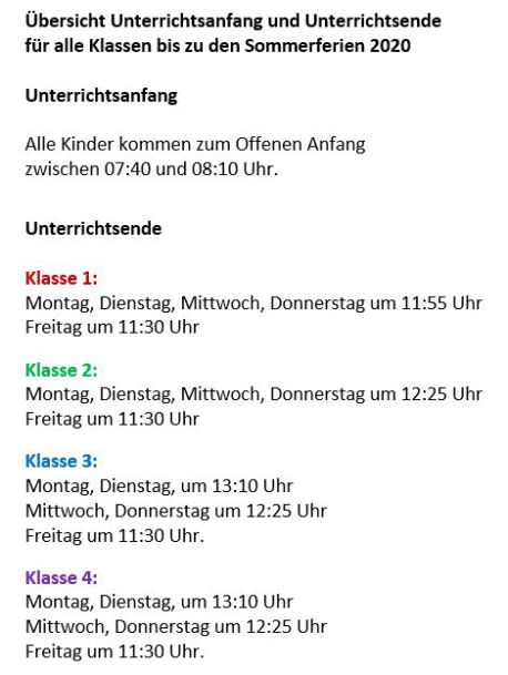 Die Unterrichtsschlusszeiten der Kinder mussten angepasst werden, um alle weiteren organisatorischen Vorgaben für die Ausgabe des Mittagessens gewährleisten zu können.
